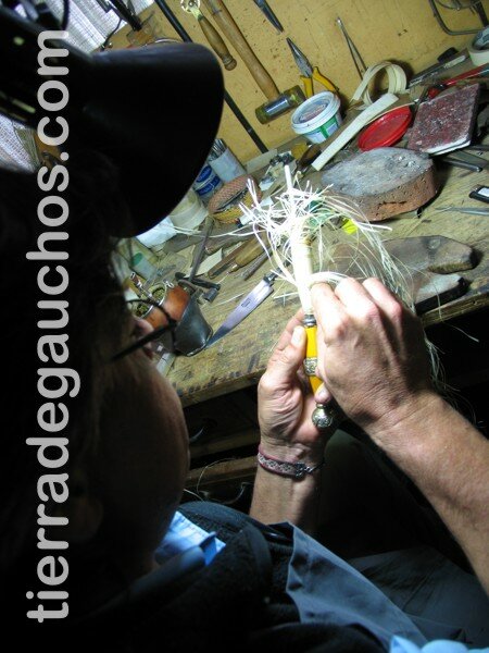 Su tarea artesanal suma un emprendimiento llamado “Trama & Plata” que complementa con la platería de su hijo; el orfebre Martín Finucci y que también podrán adquirir en nuestra Pulperia.