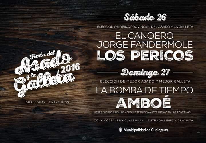 Fiesta del Asado y la Galleta en Gualeguay este sabado 26 y domingo 27 de Noviembre de 2016 con Los Pericos y Amboé.