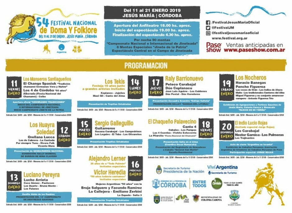 Ya se encuentra disponible la programación del Festival Nacional de Jineteada y Folclore de Jesús Maria 2019.